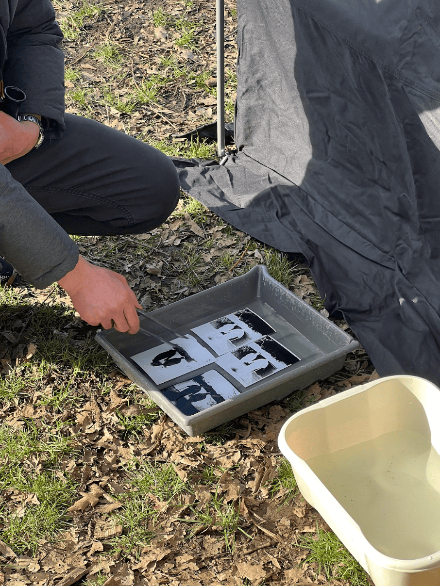 我在公園湖邊的一個遊人必經之處搭建了一個流動黑房,邀請社區朋友一同參與拍攝和沖曬過程。